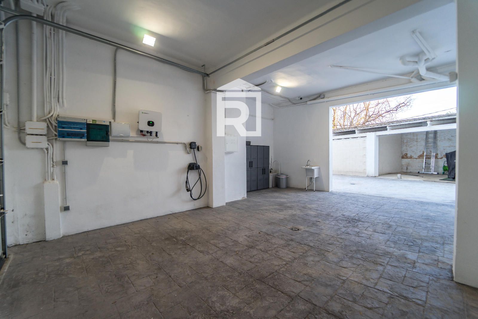 A esta base se añade una instalación fotovoltaica colectiva de 10 kW, con porcentajes de autoconsumo asignados por puerta, así como garaje con puerta automática de 3 metros y cargador de vehículo eléctrico de hasta 24 kW. El contador del garaje alimenta además el propio garaje, la oficina, la casa anexa y una futura construcción en el patio, introduciendo una dimensión de previsión y servicio que rara vez concurre con este grado de coherencia en edificios urbanos de tamaño medio.